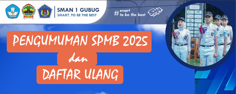 Halaman ini berisi hasil Seleksi SPMB dan Daftar Ulang SMA Negeri 1 Gubug Tahun Ajaran 2025/2026. A. Hasil Seleksi Hasil Seleksi Sistem Penerimaan Murid Baru (SMPB) SMAN 1 Gubug dapat dilihat di Link : Hasil Seleksi SPMB 2025 B. Daftar Selengkapnya